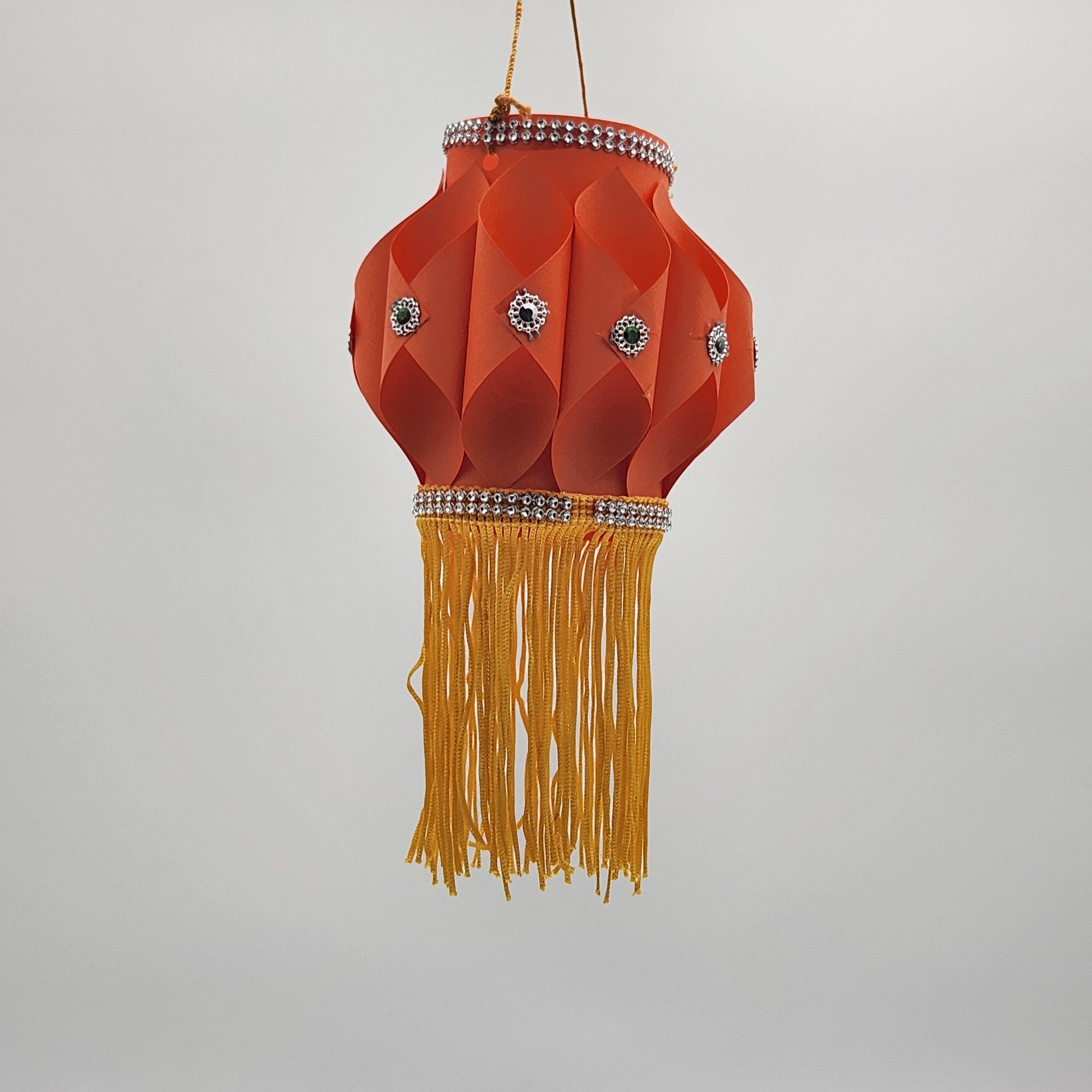 Set of 6 small ready to hang colorful diwali lanterns. Handmade, Beautiful with stones and delicate jari warq.