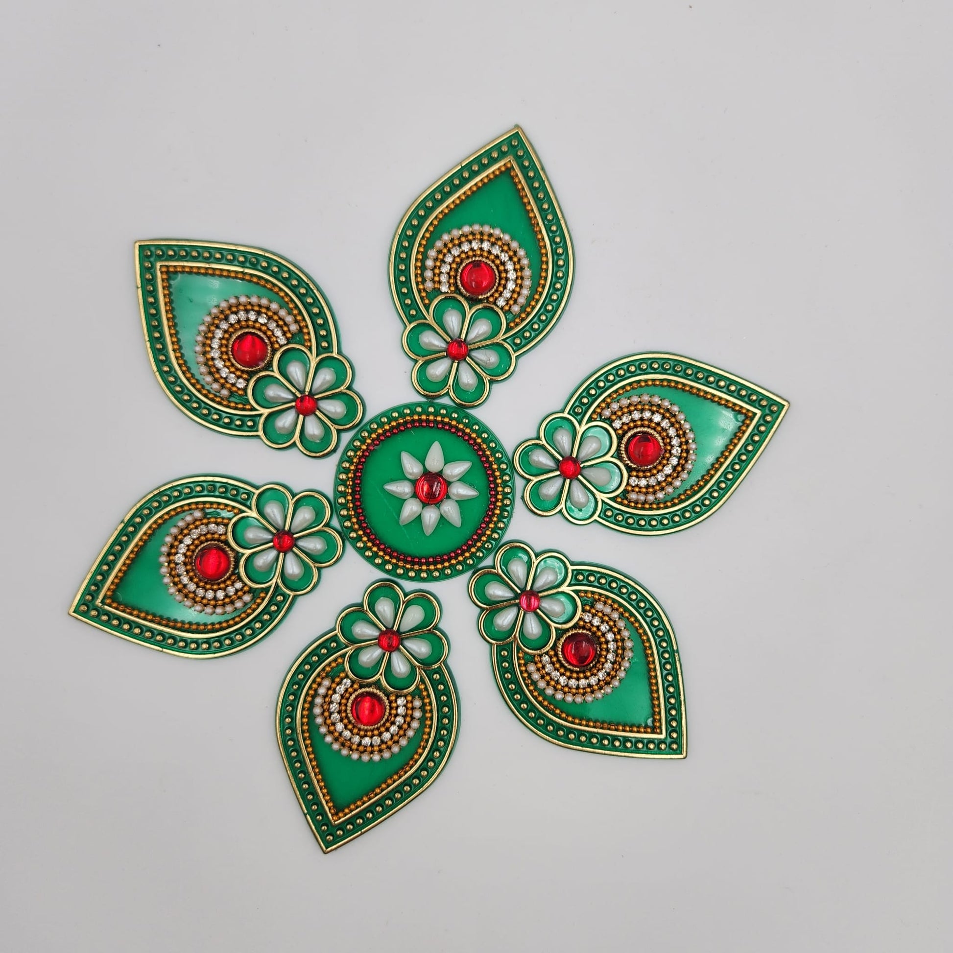 Colorful, vibrant rangolis that fit together like a puzzle in seconds. Set them up on tabletops, floors, entryways, along the walls to add a splash of decor. Fast, easy, beautiful, fun and wind resistant!