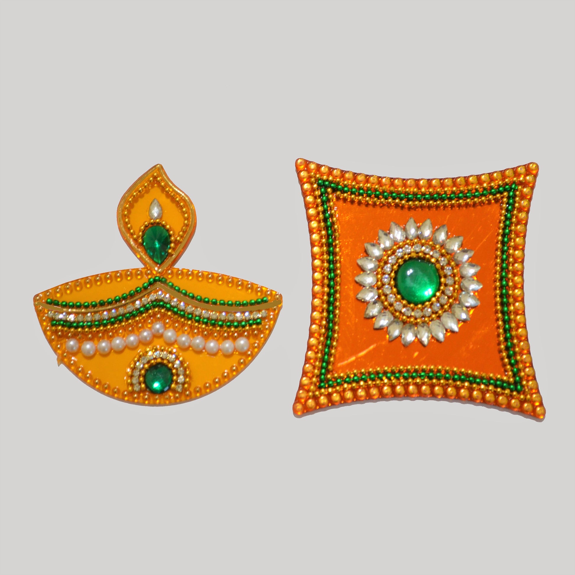 Specially for Diwali these gorgeous diya's add a festive look at the entrance, along the walls and in the pooja room. The Diya design comes in 3 color variations.