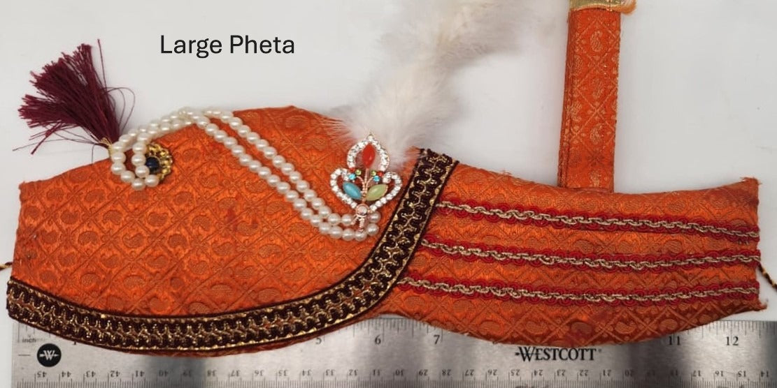 Large (12 inches) phetas fit Ganpati idols greater than 18 inches tall.