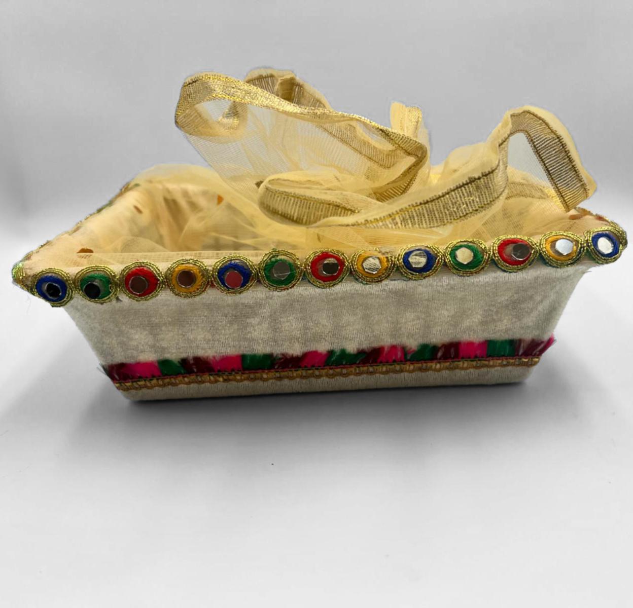 Makes a stunning gift or return favor for weddings, parties, and any Indian occasion. Perfect for keeping bangles, earrings, or any kind of jewelry. You can also fill it with chocolates, candies, dry fruits, or other items.