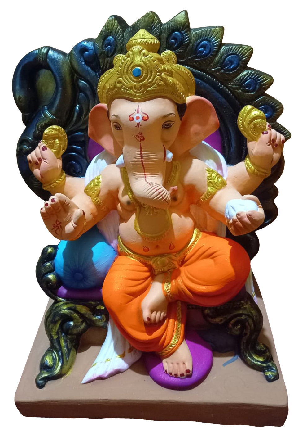 Eco-friendly, light weight handmade idol made from paper mache, clay and water soluble colors.