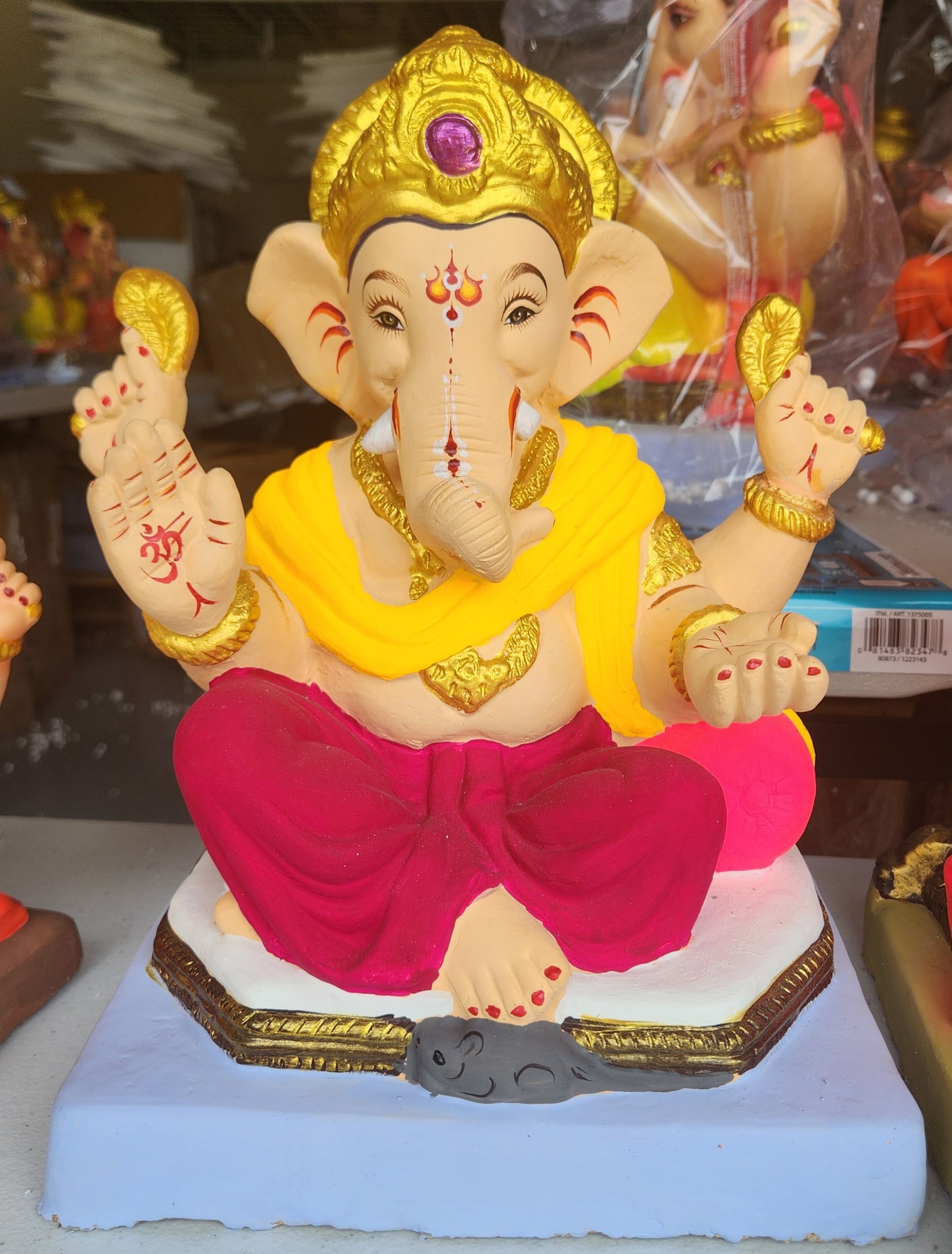 Eco-friendly, light weight handmade idol made from paper mache, clay and water soluble colors.