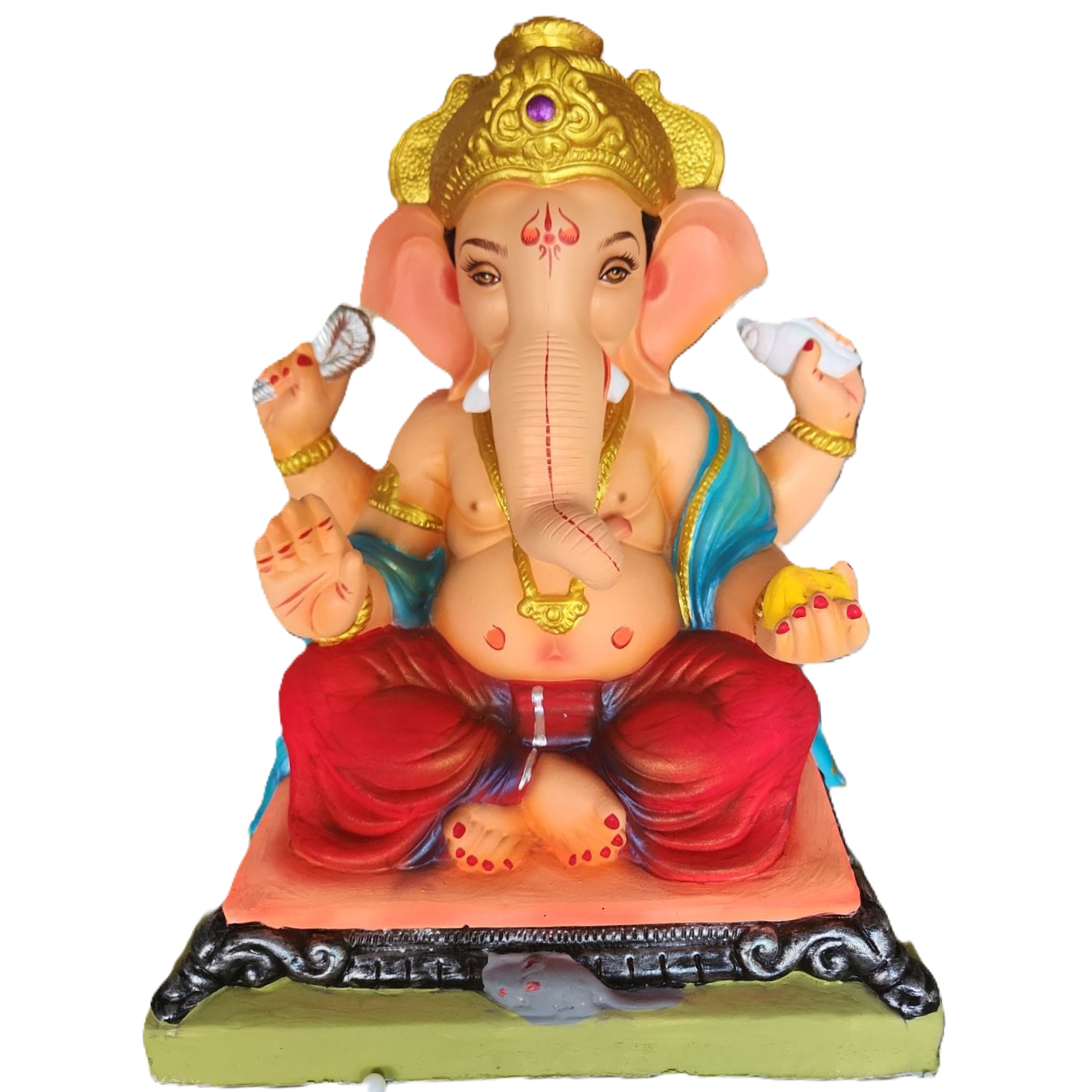 Light weight handmade idols made from paper mache, clay and water soluble colors.