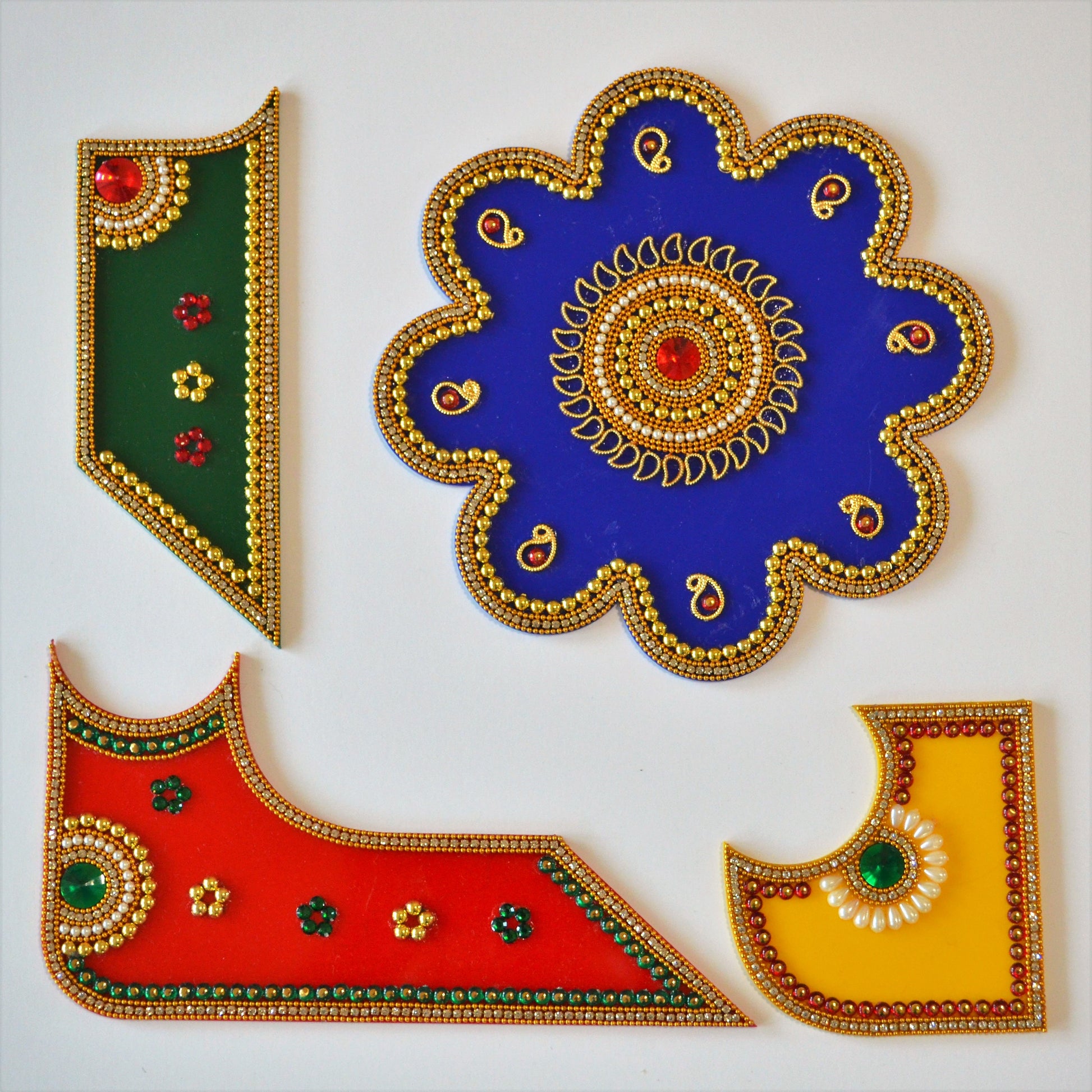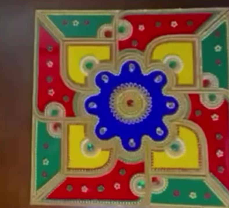 Embedded in traditional colors and an array of intricate stones, Prosperity draws its inspiration from the auspicious symbols and yantras. The Prosperity is intended to channel the positive energy in your home. This large creation is perfect for the pooja room and coffee or console tables.