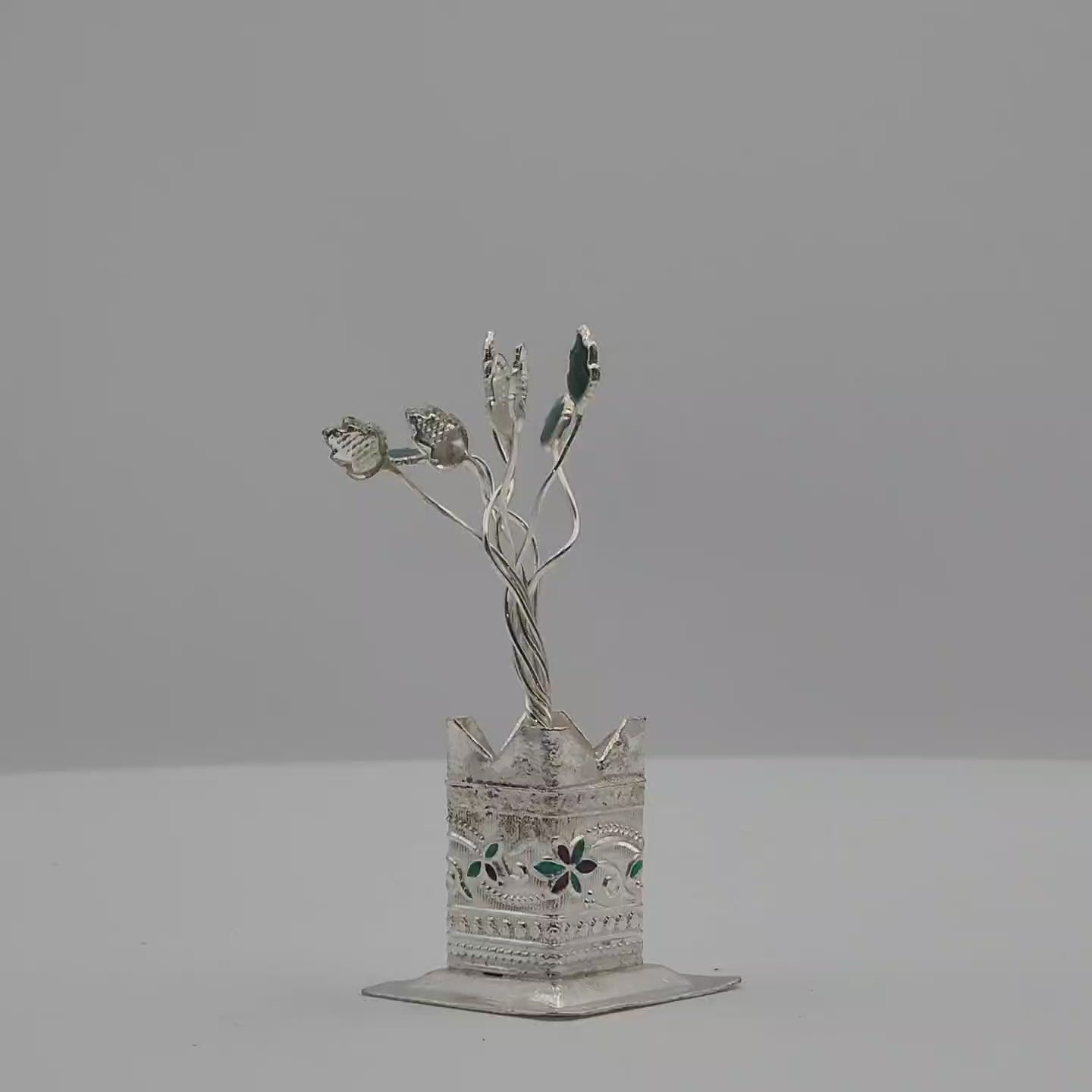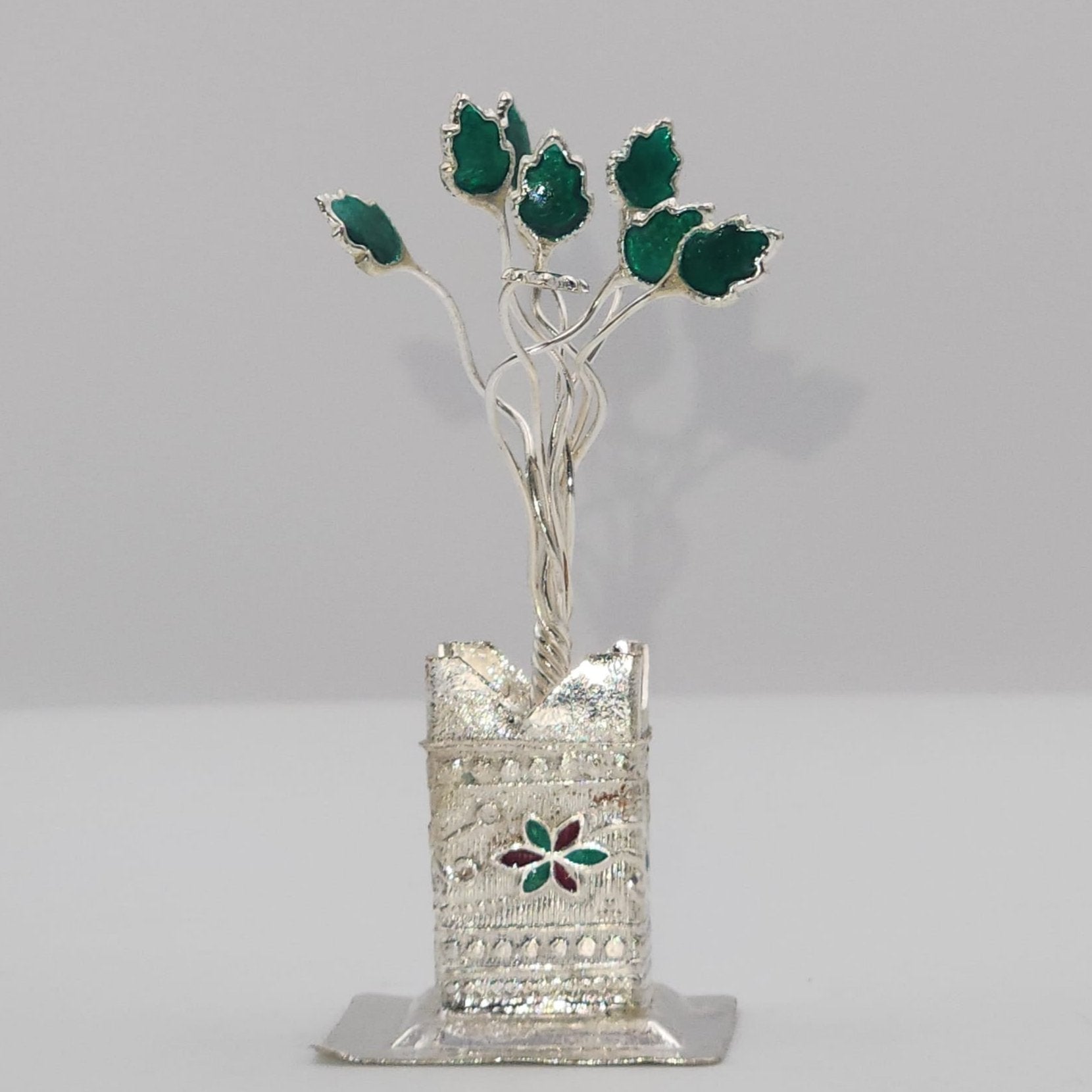 Silver Plated Metal Tulsi Plant for pooja, gifts, party return gifts, favors, home or Office decor